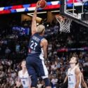 森林狼队的中锋鲁迪·戈伯特以 14 分和 7 个篮板抢先,法国队以 95-60 击败捷克共和国队。尼克斯后卫埃文·富尼耶得到 7 分,雷霆队后卫西奥·马尔顿在替补席上的 8 分钟内得到 5 分。